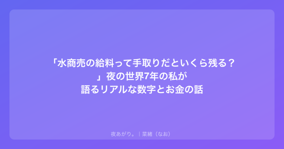 もし今、あなたが「水商売の給料って、本当の手取りはいくらなんだろう」とか「もっと効率よくお金を残す方法はないのかな」って悩んでいるなら、ちょっとだけ私の話を聞いてほしいな。
