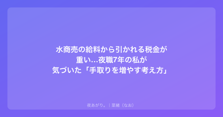 「手取りが少なすぎる…」水商売の給料と税金のモヤモヤ、ありませんか?