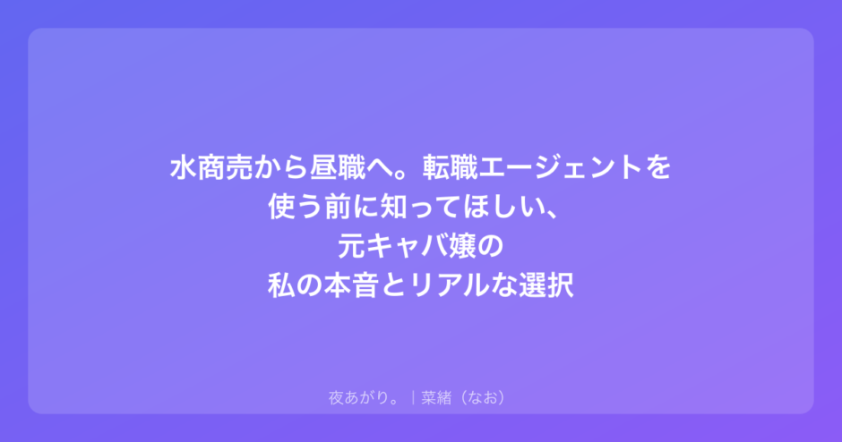 そんな不安が積み重なって、スマホで「水商売から昼職に転職?|私の選んだ道」って検索してみる。