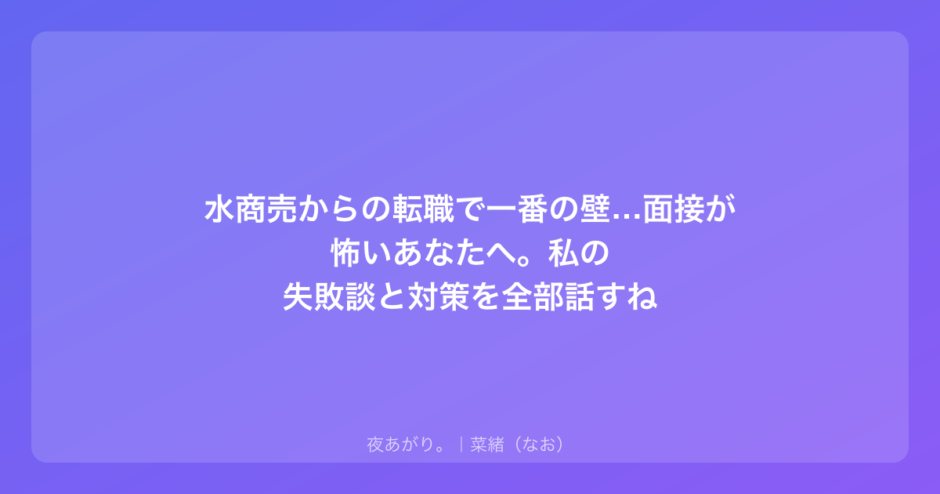 最近、昼の仕事への転職を考えて「面接」という言葉が頭をよぎるたびに、なんだか胃がキュッとなるような、落ち着かない気持ちになってないかな。