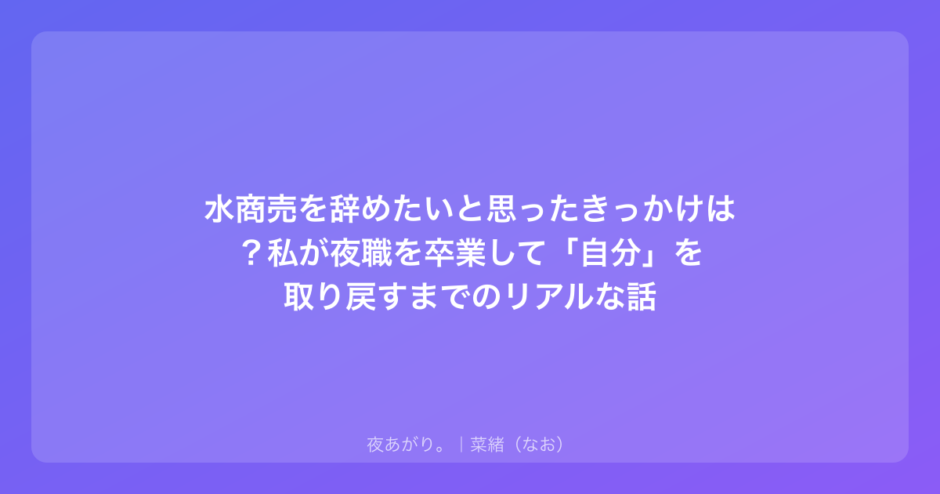 この記事では、夜職を辞めたいと思うリアルなきっかけや、私がどうやってその一歩を踏み出したのかを、飾らずにお話ししていきますね。