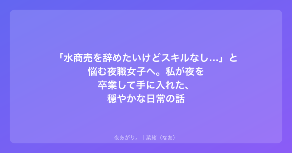 もし今、「水商売を辞めたいけどスキルなしで怖い」と感じているなら、少しだけ私の話を聞いてくれませんか。これは、特別な才能もスキルもなかった私が、どうやって夜の世界を卒業して、自分らしい生活を取り戻したかというお話です。