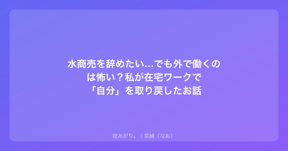 水商売を辞めたい…でも外で働くのは怖い?私が在宅ワークで「自分」を取り戻したお話