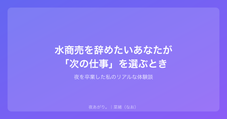 もし今、「水商売を辞めたい」という気持ちと、それでも「次の仕事が見つからない」という不安の間で揺れているなら、それは真面目に自分の人生を考え始めた証拠です。