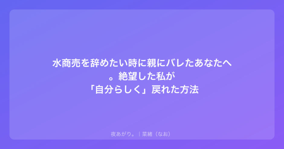 夜の仕事って、どんなに自分なりに真面目に頑張っていても、世間一般、特に親世代から見れば「隠すべきこと」として扱われがち。だからこそ、バレた時の罪悪感は計り知れないものがあります。