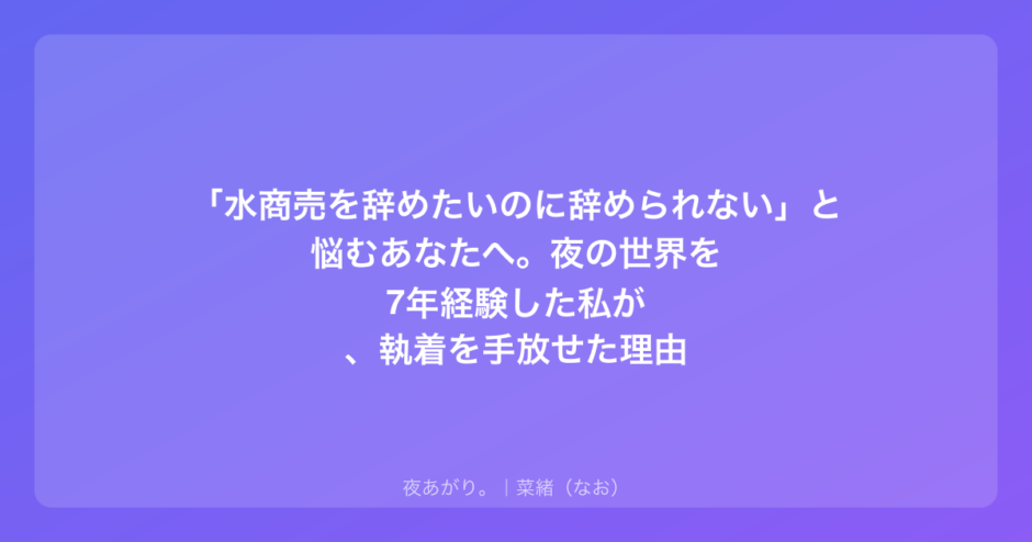 ガルバから始めて、キャバ、ラウンジと渡り歩いた7年間。何度も「明日こそ辞めるって言おう」と思ったし、実際に店長に切り出したこともあります。でも、結局引き止められたり、自分の不安に負けたりして、ずるずると20代後半まで続けてしまいました。