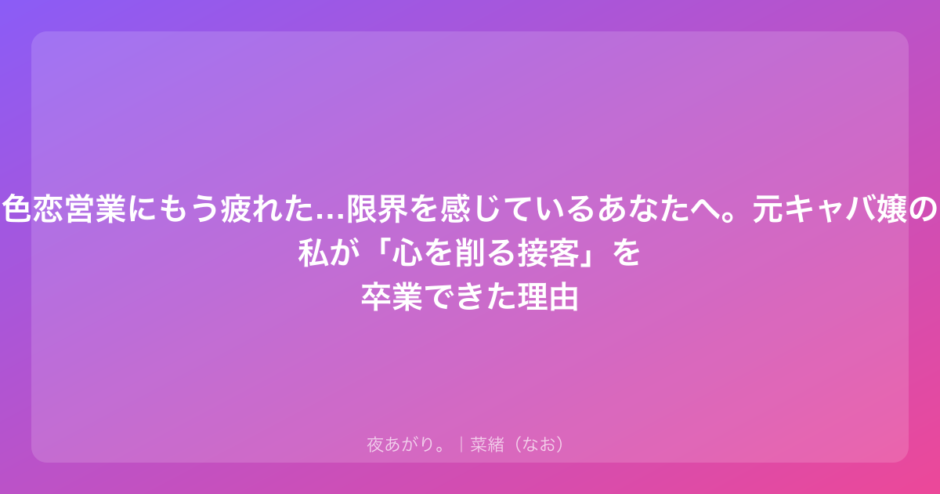 もしあなたが今、「色恋営業に疲れた、でもどうすればいいか分からない」と苦しんでいるなら、まずは自分に「お疲れ様」って言ってあげてね。