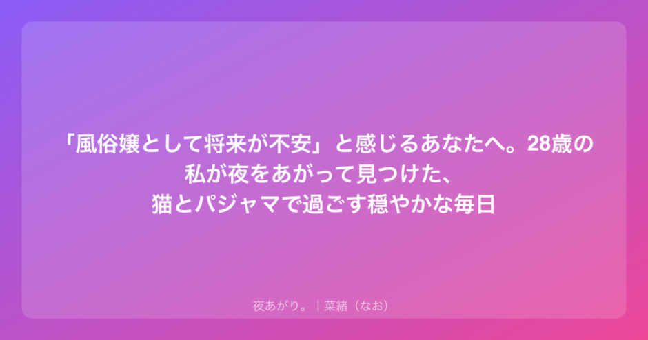携帯で「風俗嬢 将来 不安」とか「夜職 辞めたい」って検索して、答えが見つからなくてまた溜息をつく。そんな夜を、私も数え切れないくらい過ごしてきたんだよね。