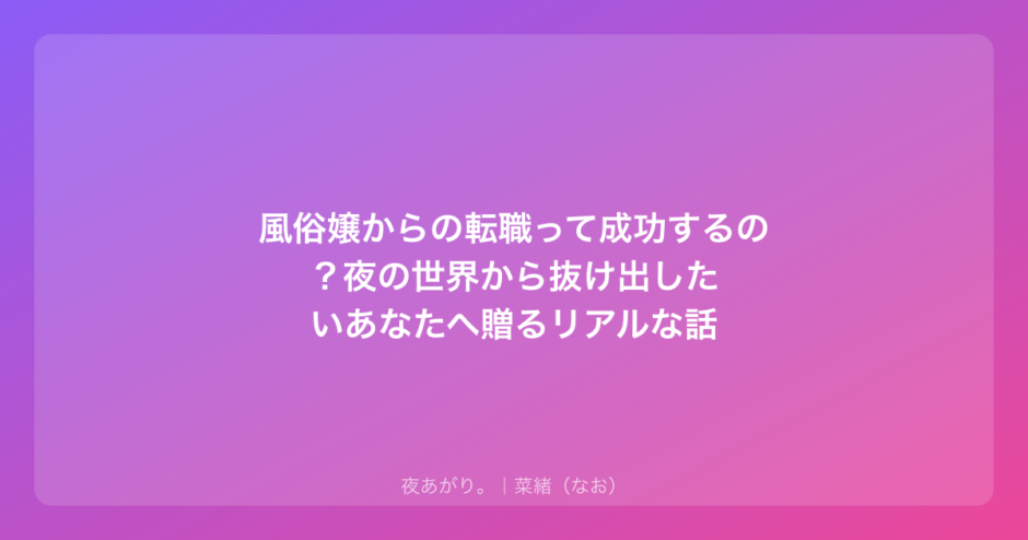 風俗嬢からの転職。それは単に「仕事を変える」ということじゃなくて、今まで無理して背負ってきた重たい鎧を脱いで、本来の自分に戻るための道のりだと思う。