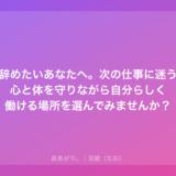 無理に今日辞めなくていい。明日すぐに何かを変えなくていい。ただ、「こういう選択肢もあるんだな」って心に留めておくだけで、今日よりは少しだけ、呼吸が楽になるはず。