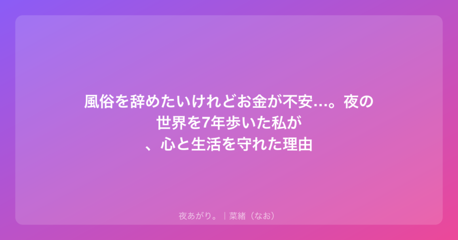 風俗を辞めたいけれどお金が不安…。夜の世界を7年歩いた私が、心と生活を守れた理由