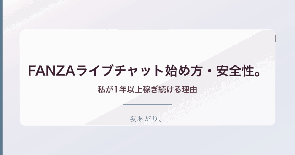私が使ってるのはFANZAのライブチャット。夜職経験者は会話力があるから、未経験の人より立ち上がりが早い子が多い。顔出し任意だから「まず試したい」段階でも始められるよ。